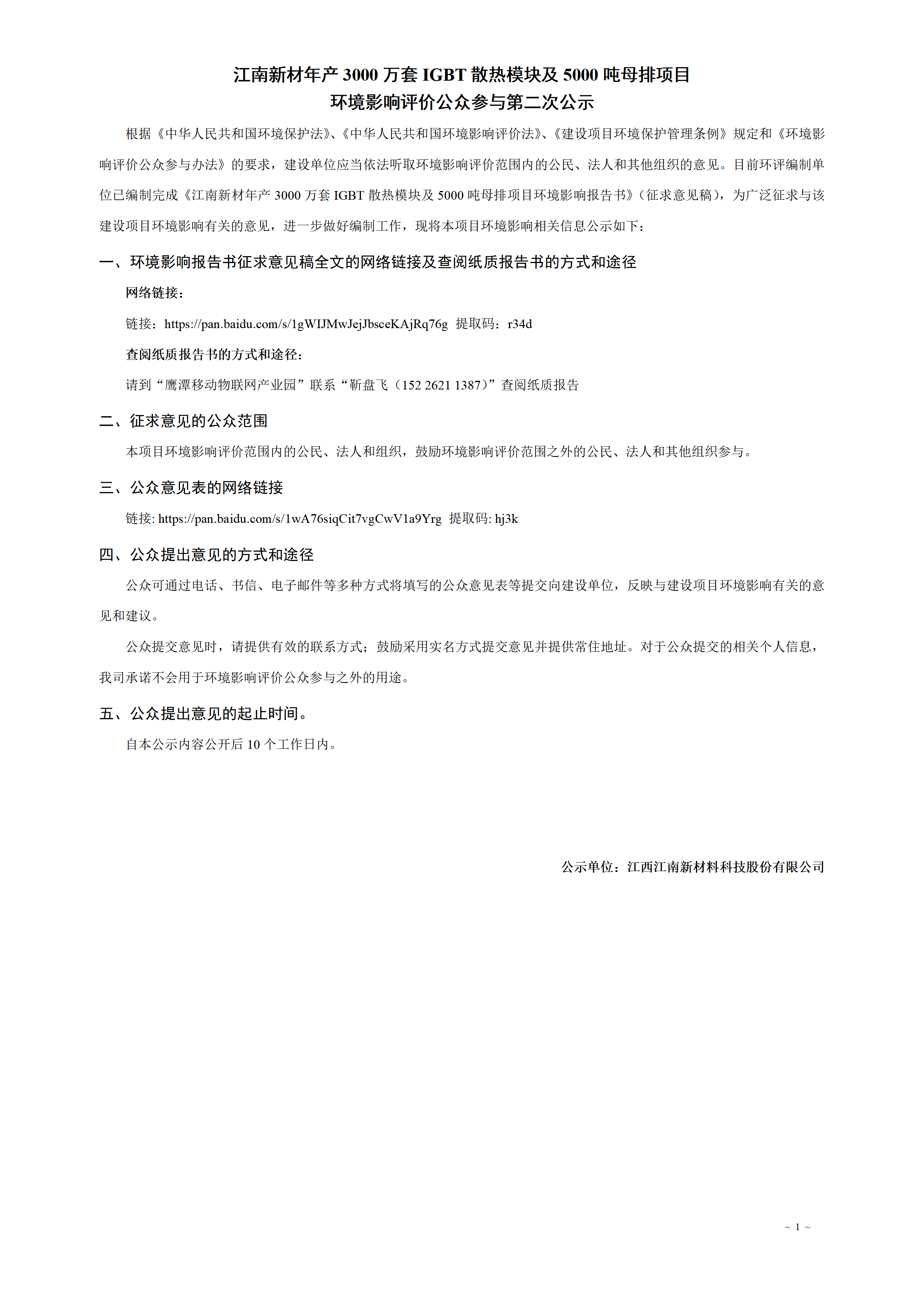 江南新材年產(chǎn)3000萬套IGBT散熱模塊及5000噸母排項目 環(huán)境影響評價公眾參與第二次公示