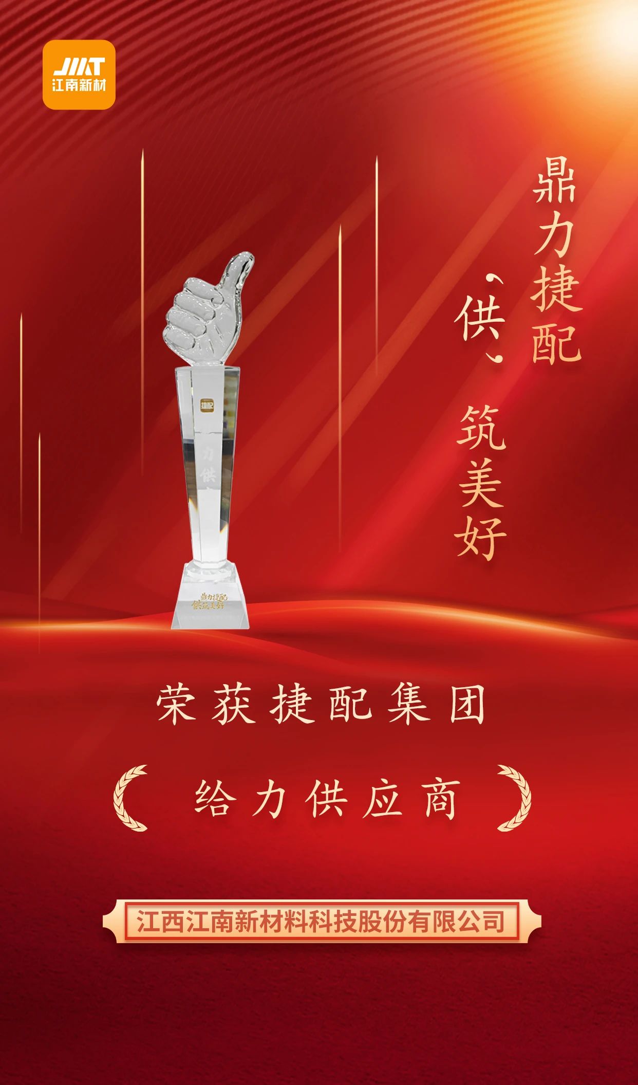 會上,為表彰并鼓勵優(yōu)秀的供應鏈合作伙伴,本次活動面向供應鏈伙伴設立多個獎項,包括“筑力獎、給力獎、鼎力獎”等。江南新材憑借卓越的品質與合作表現(xiàn)榮獲了捷配集團授予的“給力供應商獎”。