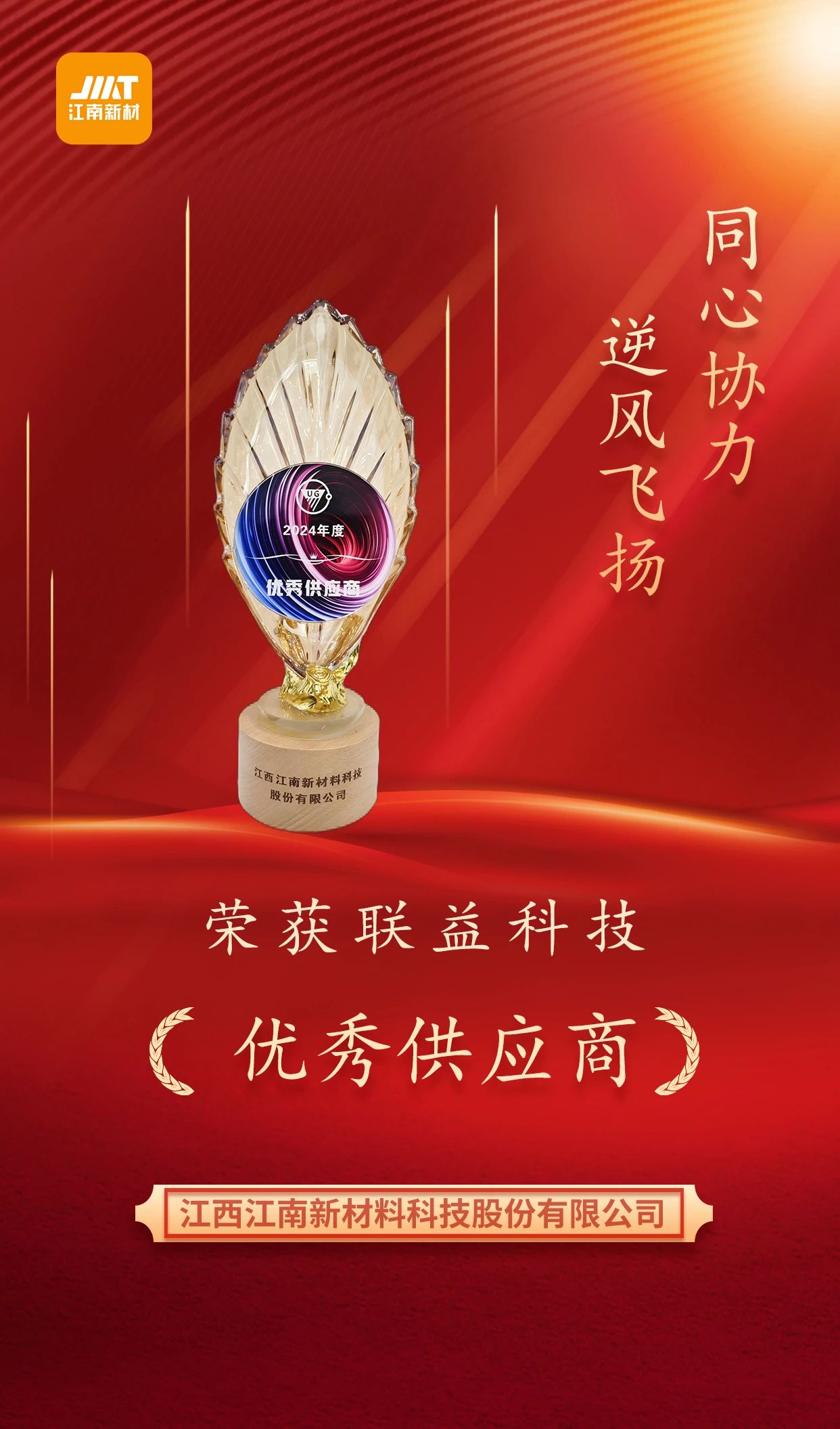 會上,表彰并鼓勵優(yōu)秀的供應鏈合作伙伴,江南新材憑借卓越的品質與合作表現(xiàn)榮獲了聯(lián)益科技授予的“優(yōu)秀供應商”。